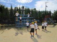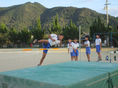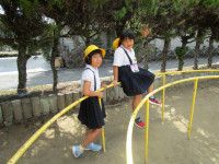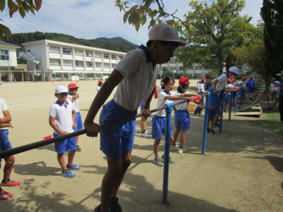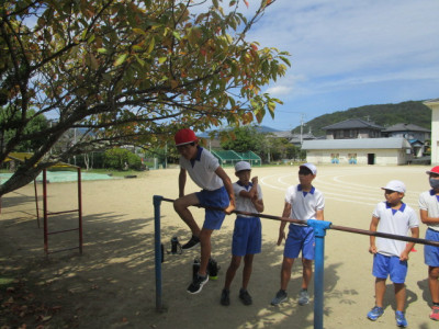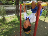 4時間目、6年生が鉄棒をしていました。逆上がりができない子は、補助具等を使って熱心に練習していました。鉄棒が得意な子は、逆上がりはもとより、足かけ上がりなどをすいすいとやって見せていました。コツをつかむまでが大変です。私も手に豆をたくさん作りながら練習したことを思い出します。