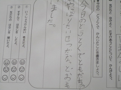 今日は、2年生の道徳研究授業が行われました。「森のともだち」という教材を使っての学習で、内容項目Bの友情、信頼がテーマとなっています。たくさんの先生方に見守られながら、2年生は一生懸命、友達について考えていきました。