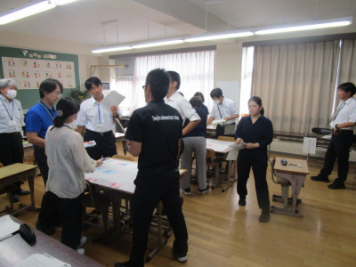 授業後の研究協議の様子です。授業展開や中心発問、児童の発言などについて良かった点や改善点などを熱心に話し合いました。講師として、松山市人権啓発課の齊藤先生に来ていただき、授業を見ていただくとともに、研究協議では助言をしていただきました。