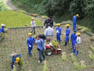 棚田の稲刈りの様子は、本日夕方6時5分頃からテレビ愛媛のニュースで放送されます。