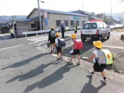 今日は、ふれあいの日で保護者や地域のみなさんの協力のもと登校指導が行われました。ふれあいの日は、毎月1回計画されていて、PTAからも当番で見守りをしていただいています。昭和刷子近くの交差点では、駐在所のおまわりさんも立っていただき、子供たちの登校を見守っていただきました。