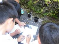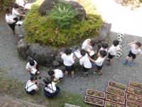 3年生は、ヒマワリの種の発芽を観察していました。発芽の様子をみんな熱心に観察ノートに記録していました。中には種の殻をつけた双葉があり、興味深げに見ている子供たちがいました。