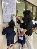 1年教室では、1年生が天神小学校のことをもっと知るために、先生たちを話題にして学習していました。天神小には何人の先生がいるのか、どれくらいの先生を知っているかなど話し合っていました。たくさんの先生がいるので、しっかり覚えてお話ができるようになるといいですね。
