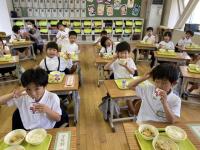 給食時に、毎日、放送委員会の児童が放送をしてくれています。今日は、男の子2人が担当でした。内容は、今日の給食の献立紹介、食材にまつわるお話、5月の誕生者の紹介などです。今日の給食には、タンドリーチキンが出ていましたが、そこから、「タンドリーチキンは、どこの国の料理でしょう」というクイズが出されました。①インド、②中国、③イギリス、正解は①のインドでした。放送委員の皆さん、聞きやすい放送をありがとう。これからもよろしくお願いします。