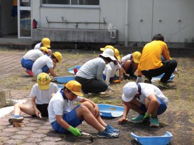 今日は暑かったので、熱中症対策のため水分補給をしながらの作業でした。みんなしっかり働いてくれたので見違えるようにきれいになりました。中学生のみなさんもお疲れ様でした。これから水泳の授業が始まるのが楽しみですね。