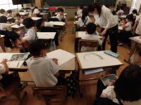 5年教室でも人権ポスターを作成していました。こちらは、ポスターのヒントにタブレットを活用しながら描いているところでした。絵も大切な表現方法の一つ。人権ポスターの作成を通して、友達のよさや思いやりの心について考えてほしいなと思います。