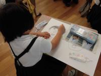 後半は、凧の展示室を見学させていただきました。日本各地の凧はもとより、世界の凧も展示してあり、子供たちは目を輝かせながらたくさんの凧を見て回りました。大きな出世凧もありました。凧博物館で一番大きな凧は、天井に飾ってあり、とても迫力がありました。
