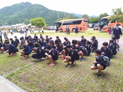 五十崎連合の修学旅行に出発しました。たくさんの保護者の皆さん、先生方に見送っていただきました。元気に行ってきます。