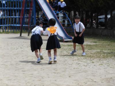 前置きが長くなりましたが、今日は、久しぶりに運動場で遊べる昼休みの時間がありました。外で待っていると、どんどん元気な天小児童が出てきます。広い運動場ですが、たくさんの子供たちが出てくると、走り回っていてぶつからないかと心配なほどです。しかし、その心配をよそにみんな周りをよく見ながら、上手に遊んでいます。