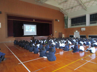 また、本日は、5時間目に不審者を想定した避難訓練と防犯教室を全校で実施しました。学校に不審者が現れた場合の手順を確認し、避難訓練を行った後、警察署から借りてきたDVDを全校で視聴しました。教室に戻ってから、学級で今日の避難訓練で学んだこと・考えたことを発表し合いました。悲しい事件に巻き込まれないように、「いか・の・お・す・し」を復習しました。