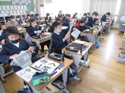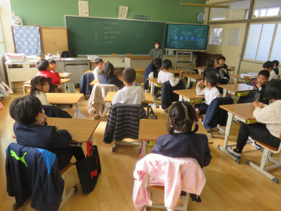 5年生教室では、習字の授業が行われていました。書いていた文字が「近づく春」。まだまだ肌寒い日もありますが、春は目の前ですね。町内のいたるところで、菜の花や梅の花、河津桜などを見ることができるようになりました。暖かい春が待ち遠しいですね。