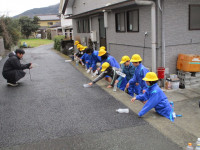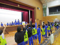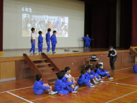続いて、体育館に移動して1年生が小学校での生活や学習の様子を紹介しました。国語の音読、計算カード、リコーダー、絵画、なわとびを上手に披露することができました。そして、1年生全員で、みんなが大好きな絵本「だるまさんが・・・」を動きで表現しました。新入児も一緒に体を動かし、楽しい交流ができました。子供たちの感想発表の中に、新入児に対して、「(天神小学校に入学したら)何か困ったことがあったらいつでも言ってください!」という力強い言葉もありました。