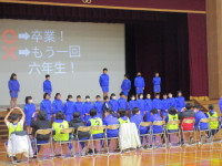 また、午後からは、6年生を送る会が行われました。各学年が6年生に楽しんでもらおうと楽しい企画を用意していました。一緒に踊ったり、クイズをしたり、工夫が詰まった発表で、6年生も大いに盛り上がっていました。発表のあちこちに、大好きな6年生には卒業してほしくないという気持ちも出ていて、本当に頼りになる優しい6年生だったのだなと改めて感じました。6年生を送る会の閉会挨拶が終わったかと思いきや・・・。先生たちからのサプライズ演出もありました。今日は、全校で6年生に感謝の気持ちを伝えることができ、充実した一日だったと思います。残りの少ない6年生との小学校生活を大切に過ごして行きたいと思います。