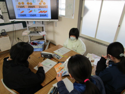 今日は、2時間目に内子町役場の方が講師で来校され、6年生を対象に消費者教育を行っていただきました。SDGsを扱ったテーマで、いろいろな観点から子供たちに食材を選ばせ、紙面上でカレーを作るという授業でした。まず、ビーフカレーにするか、ポークカレーにするかというところからになりますが、子供たちの選択は、ポークカレーが多かったようです。また、値段の違うお肉が選択肢としてありますが、消費期限から考えたり、被災地支援から考えたり、いろいろな観点から話し合い、カレーを作っていきました。これから自分で材料を買って料理をする場合に、この授業が生きてくるのではないでしょうか。