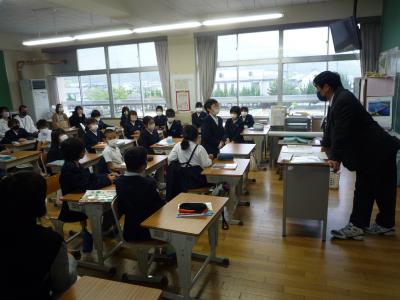 竹組教室では、5年生が社会の学習をしていました。車の組み立てや米作りなど日本の社会を支える産業について熱心に学習していました。