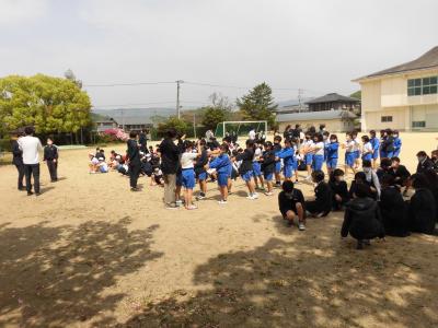 体育館に行ってみると、大勢の子供たちが活動していました。前任校が全校20名の学校だったものですから、大きな集会でもしているのかなと思っていると、3年生の体育の授業でした。えー、3年生だけでこんなにいたかなと思い、数えてみると確かに35人いました。