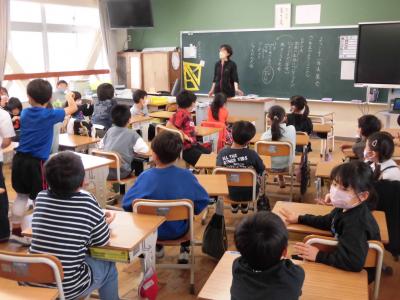 今日は、ALTのパトリシアが来校し、授業をサポートしてくれています。2時間目に4年生で外国語の授業が行われていたので様子を見てきました。世界の国のあいさつがテーマで、子供たちは、いろいろな国の言葉を使って友達や先生と交流を楽しんでいました。