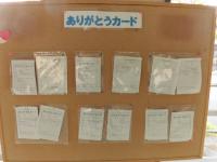 最後に、ありがとうカードについて紹介します。天神小では、友達によくしてもらってうれしかったことをカードに書いて掲示するとともに、お昼の放送で紹介する活動をしています。