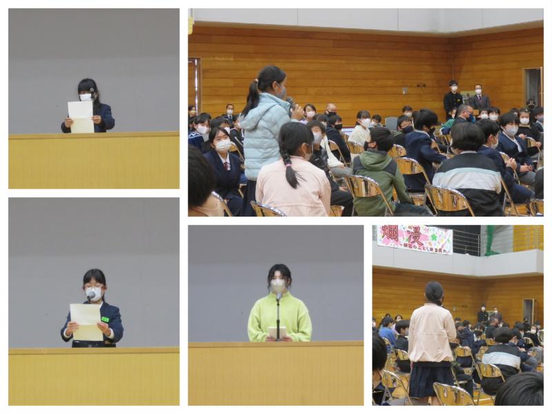 感想発表では、本校児童も挙手して感想を発表してくれました。「様々な立場を考えて相手を思いやる行動を取りたい。」「エールの歌声が美しかった。」など、聞いていて共感する内容ばかりでした。「自分と違う考えを持っている人の考えや意見を尊重すること」「相手を大切にすることは自分も大切にすること」等、みんなで考え意見交換し、学びの多い集会でした。