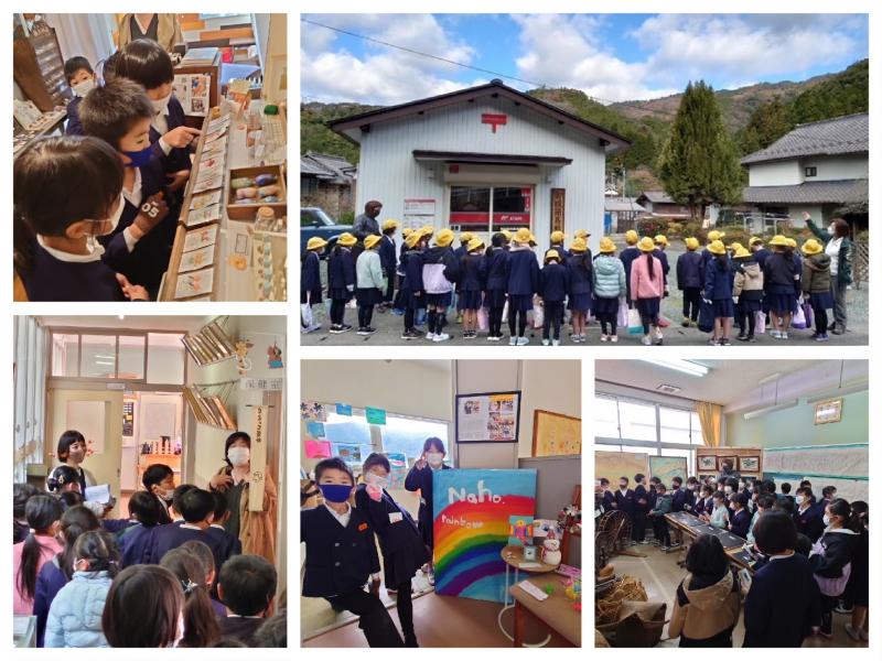 今日は2年生が来るのを待ち受けていただき、現在「みそぎの里」となっている旧御祓小学校の中を見せていただきました。和紙のお店や、整体、コーヒーショップ、ギャラリー等、子供たちは目を輝かせていろんな場所を見学しました。