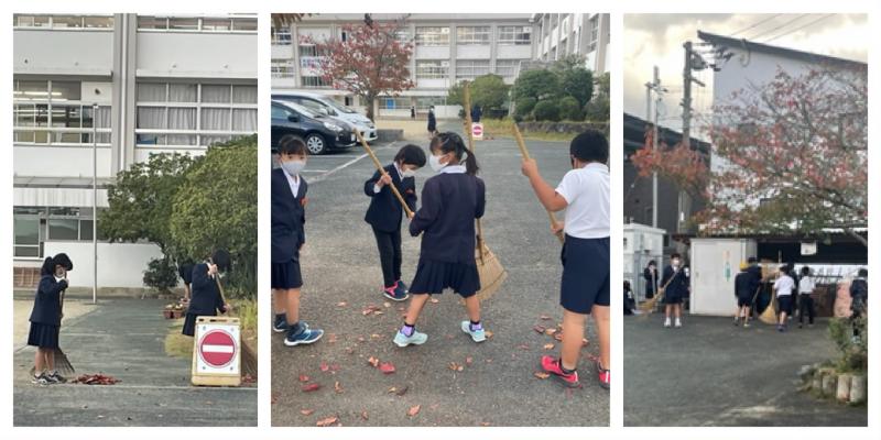 もう少しすると、紅葉の葉など体育館周辺の落葉も多くなります。それでも、毎年子供たちがせっせと片付けてくれるのです。これは、天神小のよい伝統です。最近は、高学年だけでなく低学年も頑張ってくれています。自分たちの学校を、自分たちできれいに・・・。