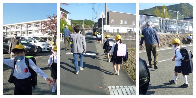 11月8日(火)、1年生は5時間授業。そのため、1年生のみの下校となります。そんなとき、毎週助けていただいているのが、地域のボランティアの皆様による見守りt活動です。