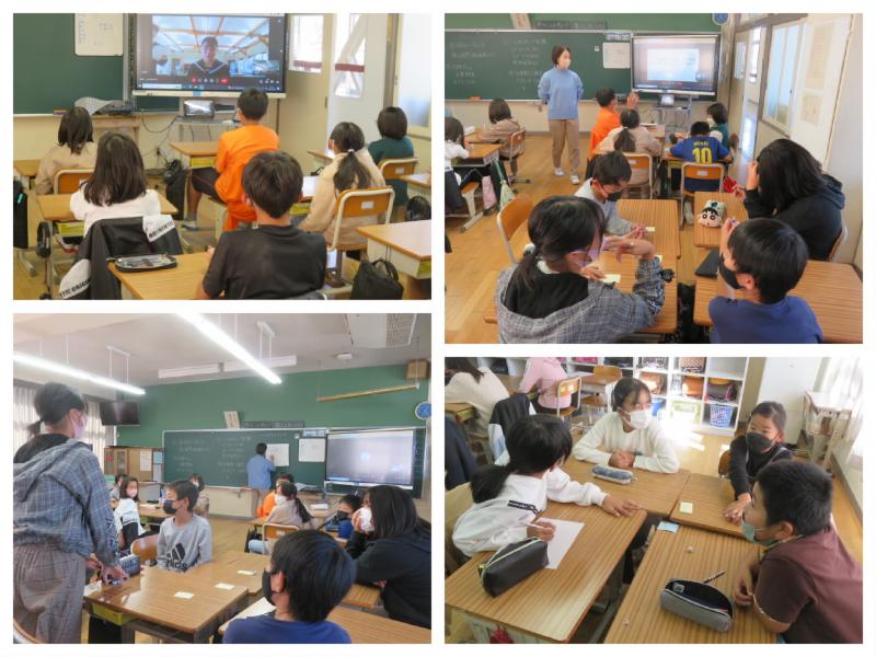 11月8日(火)の4時間目、6年生の外国語科の授業を見に行きました。6年生は、学習発表会に向けて、「地球で暮らす生き物について発表するために、今までに学習したことを使って表現する」学習をしていました。子供たちは、自分で考えた文を友達に紹介し合って、もっと詳しくなるための工夫を考えていました。ALTのパトリシア先生にも助けてもらったり、やり方を見せてもらったりなどする中で、「森の中だから、in the forest って表現するんじゃない?」とか、「得意って、英語でどう表現するんだった?」など、互いに教えたり教えられたりしながらグループで学習を進めることができていました。