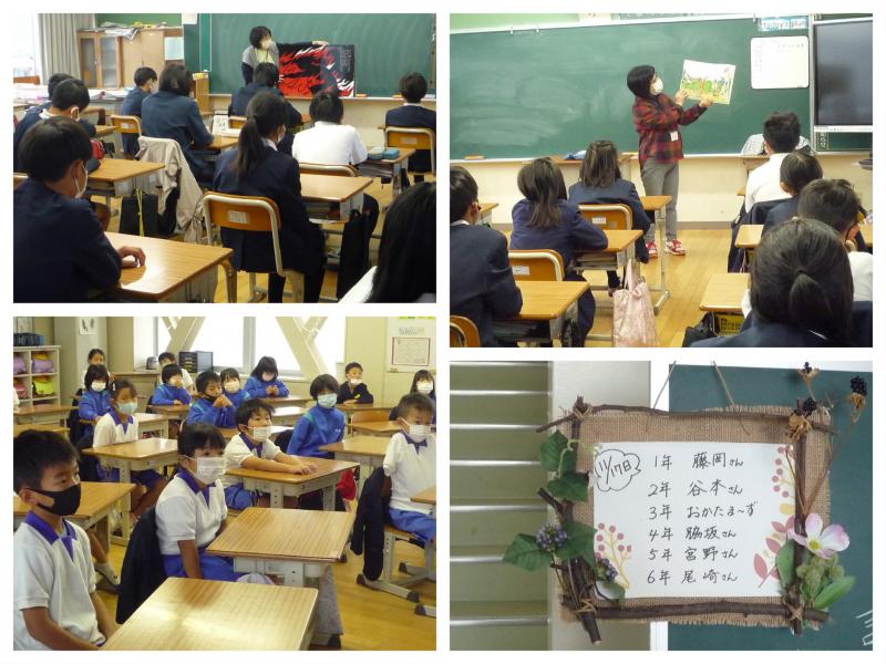 この日のために準備していただいた本を持って、各担当の学年に入ってもらいます。子供たちは、もう夢中!すっかり絵本の世界に引き込まれていきます。想像の世界を広げながら、しっかりとお話を聞くことができました。