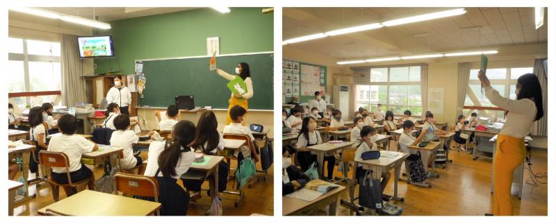 でも、各教室で生き生きと学ぶ子どもたちの姿はたくさん目にしました。今日はALTのパトリシア先生も来ていただき、外国語や外国語活動の授業でネイティブな発音を聞かせていただいています。