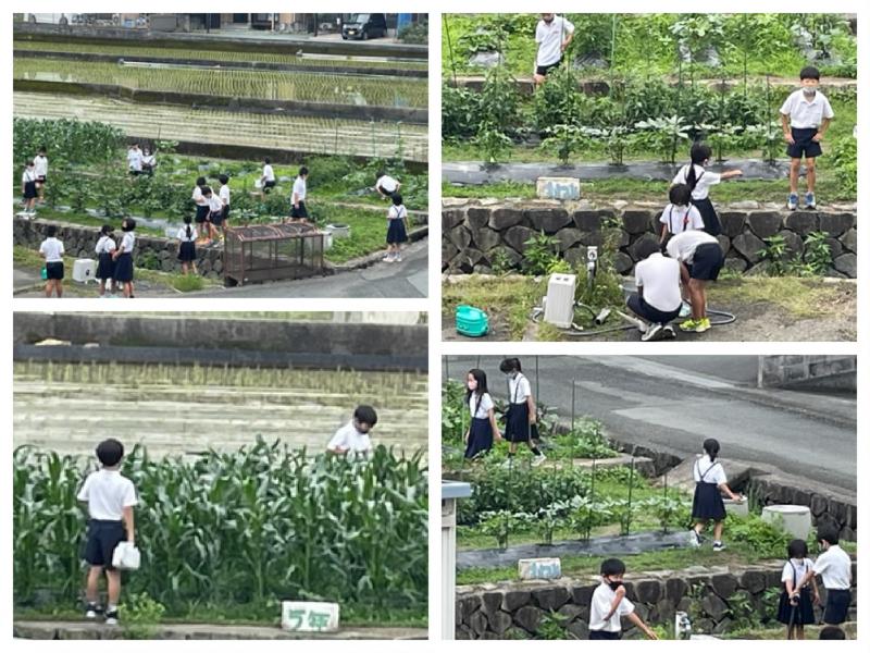 朝の学級園の様子です。子どもたちは、自分たちで考えて進んで水やりをしています。当番とか関係なく、自主的に水をやる。協力してやる。そんな子どもたちの様子は、とても生き生きしているし、とても頼もしいです。