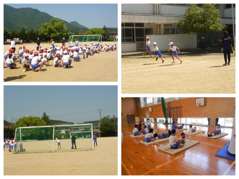 6月3日(金)、2・3時間目、新体力測定を実施しました。2時間目は、2・3・5年生、3時間目は1・4・6年生です。50m走、上体起こし、ソフトボール投げ等を太陽の子グループに分かれて移動し、測定しました。