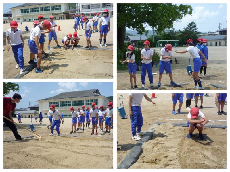 早速、5時間目に6年生が新体力テストの種目である立ち幅跳びの測定をリニューアルした砂場で行いました。「先生、砂がさらさら!」「すごい!」立ち幅跳びよりも、砂の感触に驚き、喜ぶ6年生!なんてかわいいんでしょう!