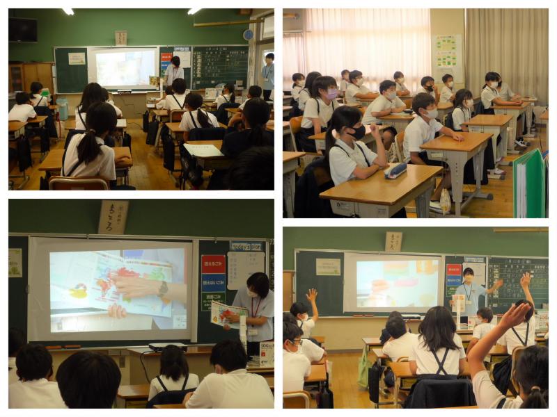 6月9日(木)の5時間目、図書情報館の職員の方が来校し、ブックトークをしていただきました。テーマは「SDGsと内子町の取組」です。本の紹介を通して、持続可能な社会実現のために自分たちができる取組について考える機会にもなりました。ブックトークをしてもらいながらの5年生の反応が素晴らしくて、思わず私もほっこりしてしまいました。とても熱心に話を聞いているのがよく分かりました。(*^_^*)