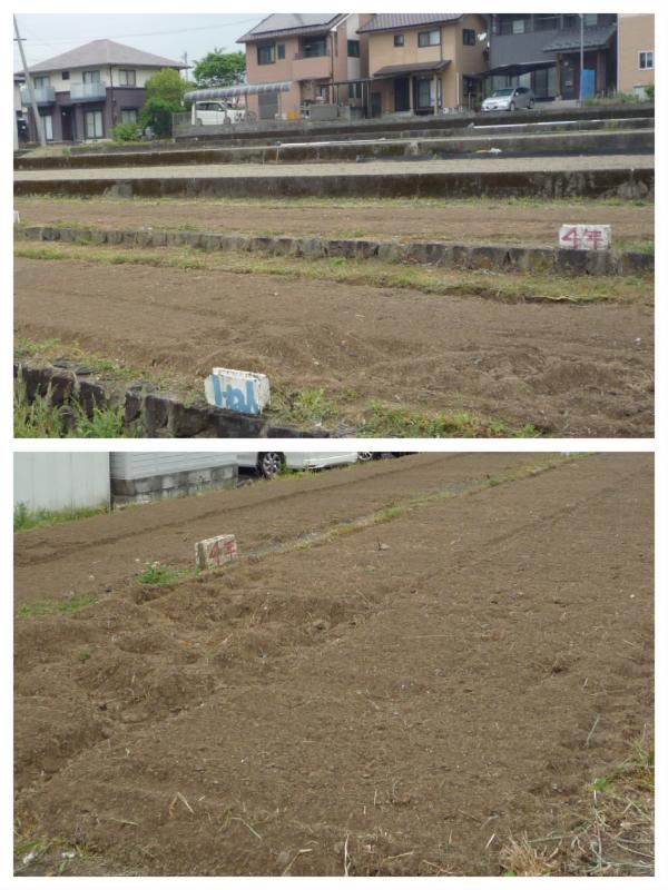 5月9日(月)、休み明けの学級園を見てびっくり!なんときれいに整地されているではないですか!? 実はこれ、以前JA五十崎支所に勤務されておられた森さん(柿原地区)が連休中に来ていただき、草を刈り、耕運機で耕して整地していただいたとのこと・・・。