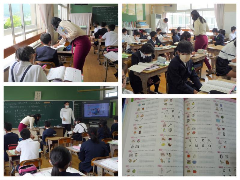 5月10日(火)の4時間目は6年生の外国語の授業。今日は、ALTパトリシア先生が来て一緒に授業をしてくれています。ネイティブな発音を聞いて、クイズ感覚で単語を理解していきます。