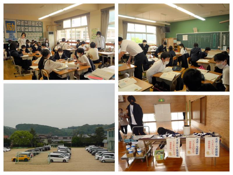 そして、今回もまた、保護者の皆様の見事な駐車の様子。さすがです。また、体育館では早くからPTA保健体育部の方が来て、スポーツ交流会の準備を進めていただいていました。本当に、ありがたいです。(^o^)