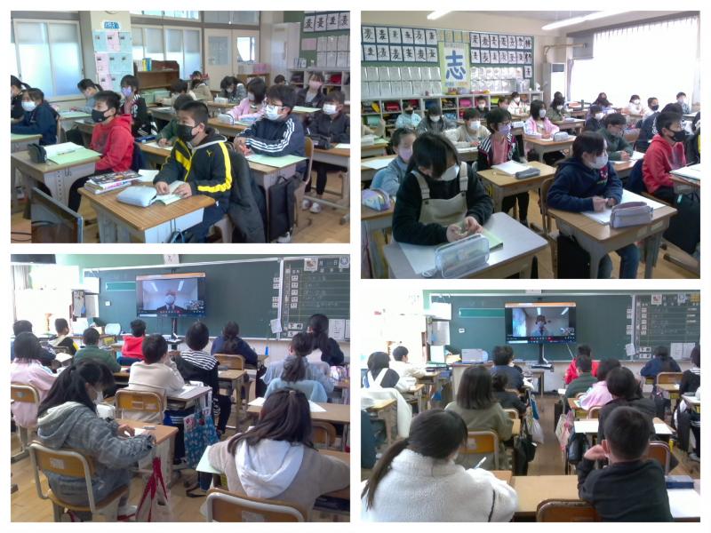 真剣に話を聞いていた4年生の子どもたち。視聴後、「プラスチックは、身近にあって使いやすいけど、自然界では分解できないことを知りました。」「プラスチックは海に長され、ウミガメや魚が餌と間違えて食べてしまうことがあると聞き、とてもびっくりしました。また、それが原因で命を落とすことを知り、とても悲しくなりました。」「自分は、ごみを捨てないように気を付けたいし、ごみも拾っていきたいと思った。」「ごみを出さない工夫をしたい。」等々、たくさんの感想や意見を持つことができました。ワークショップはできなかったけれど、環境問題にしっかり目を向けることができ、有意義な時間となったようです。