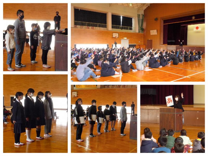 感想交流では、「かけ声が楽しかった。」「本の紹介をしてもらったので読んでみたいと思った。」等の声を聞くことができました。図書委員会のがんばりのおかげで、心がほっこりした集会となりました。