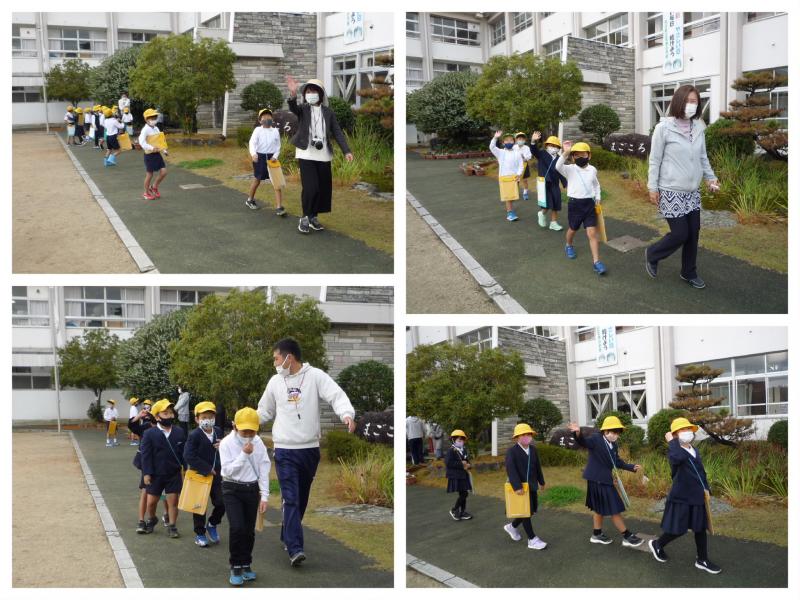 2021年11月18日 10時29分11月18日(木)の2時間目、3年生が内子商店街の見学に出かけていきました。子どもたちはみんな探検バックを身に付けそこには何やら地図が・・・。今日の目的は内子商店街に行って、実際に働く人のお話を聞いたり、建物や道路等商店街の様子を見たりすること。「百聞は一見にしかず」です。この活動も地域コーディネーターの小野さんに協力していただいてます。