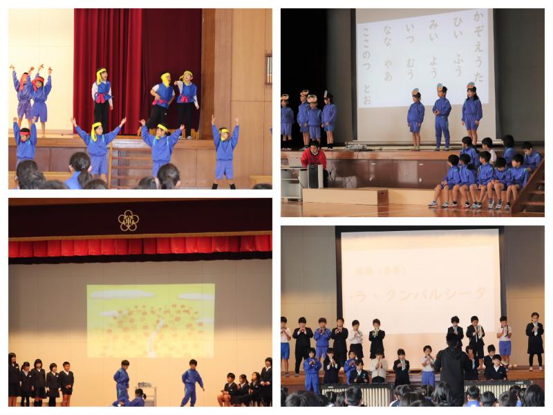 11月17日(水)の午前中、学習発表会の総練習を行いました。どの学年も一生懸命練習に取り組んできた内容を互いに見てもらいます。当日は関係学年の保護者の方々しか見ることができないので、実質子どもたちにとっては他学年の発表を見る最初で最後の機会です。