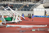 今日は、愛媛県小学校陸上運動記録会が松山市のニンジアムスタジアムで開催されました。朝から冷え込み、とても寒い一日となりました。また、午前中は雨が降る時間もあり、コンディションの悪い中でしたが、子供たちは精一杯頑張りました。写真は、女子走り幅跳び、女子60mハードル、男子60m、女子ソフトボール投げ、男子リレー(1走→2走)、女子リレー(1走→2走)を撮ったものです。