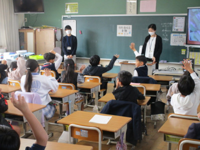 5日間に渡る中学生の職場体験(ジョブチャレンジU-15事業)が最終日を迎えました。最初は少し固かった中学生の表情も次第に穏やかになり、小学生も中学生を慕って楽しく過ごすことができました。休み時間には、たくさんの子供たちが中学生に集まる光景も見られました。