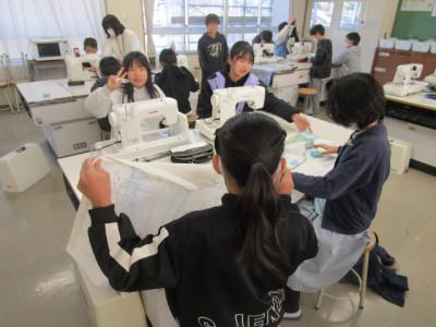 家庭科室では、5年生がミシンの授業を受けていました。エプロンをミシンで仕上げているところで、三つ折りにした部分を友達と協力しながら上手に縫っていました。最近は、教材の布も種類が増えて、いろいろなキャラクターや模様が選べるようになっています。仕上がったらみんなでファッションショーをするのかな?どんな仕上がりになるのか楽しみですね。