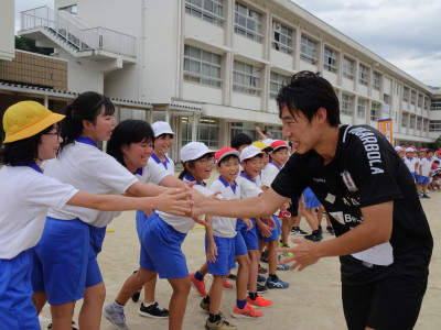 4年生は体育で、ソフトバレーボールに挑戦です。