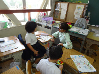 今日は、ゲストティーチャーの方に2年生と5年生に来ていただきました。