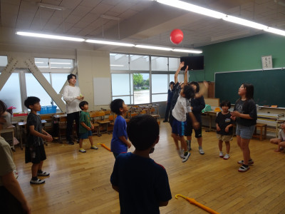 みんなで仲間作りゲームをして、新しい友達と触れ合いました。