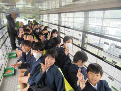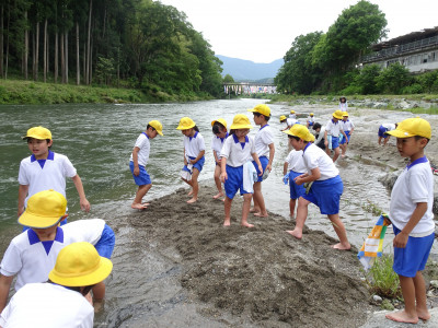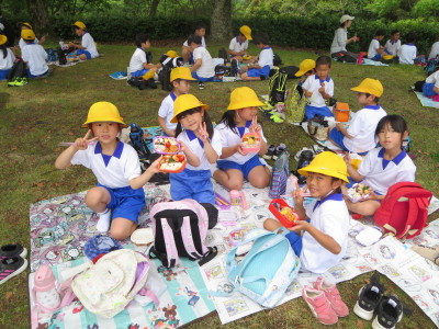 今日は、1年生が豊秋河原に「秋さがし」にいきました。