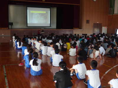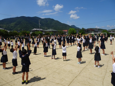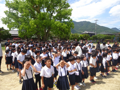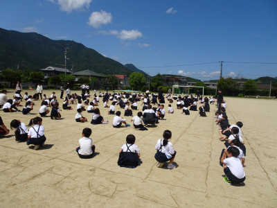 今日は、6年生がリーダーとなって、みんなに伝えていました。