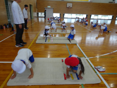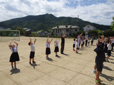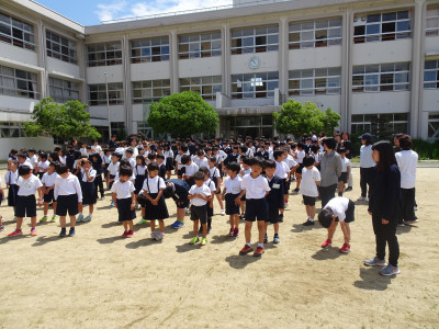 3年生は体育です。運動会に向けて、ラジオ体操とリレーの練習をがんばっていました。