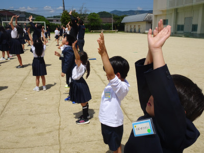 今日も暑くなりました。でも子供たちも燃えています。運動会に向けて、えいえいおー。